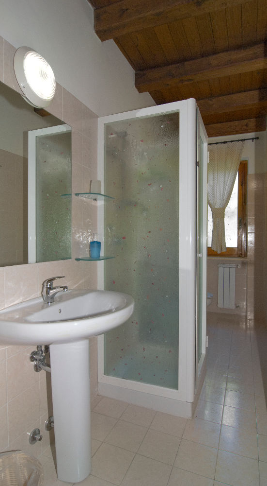 The Junior Apartment of Tenuta Merlano Agritourism has two levels and it is composed by 1 triple room with double bed plus single bed, 1 double room with twin beds, 2 ensuite bathrooms with shower, a living room with fridge and kitchenette.
